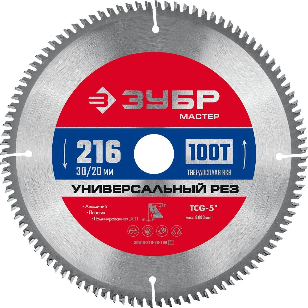 ПроизводителиДиск пильный 216х30/20х2.4х100Т по алюминию "Универсальный рез" (36916-216-30-100_z01) ЗУБР