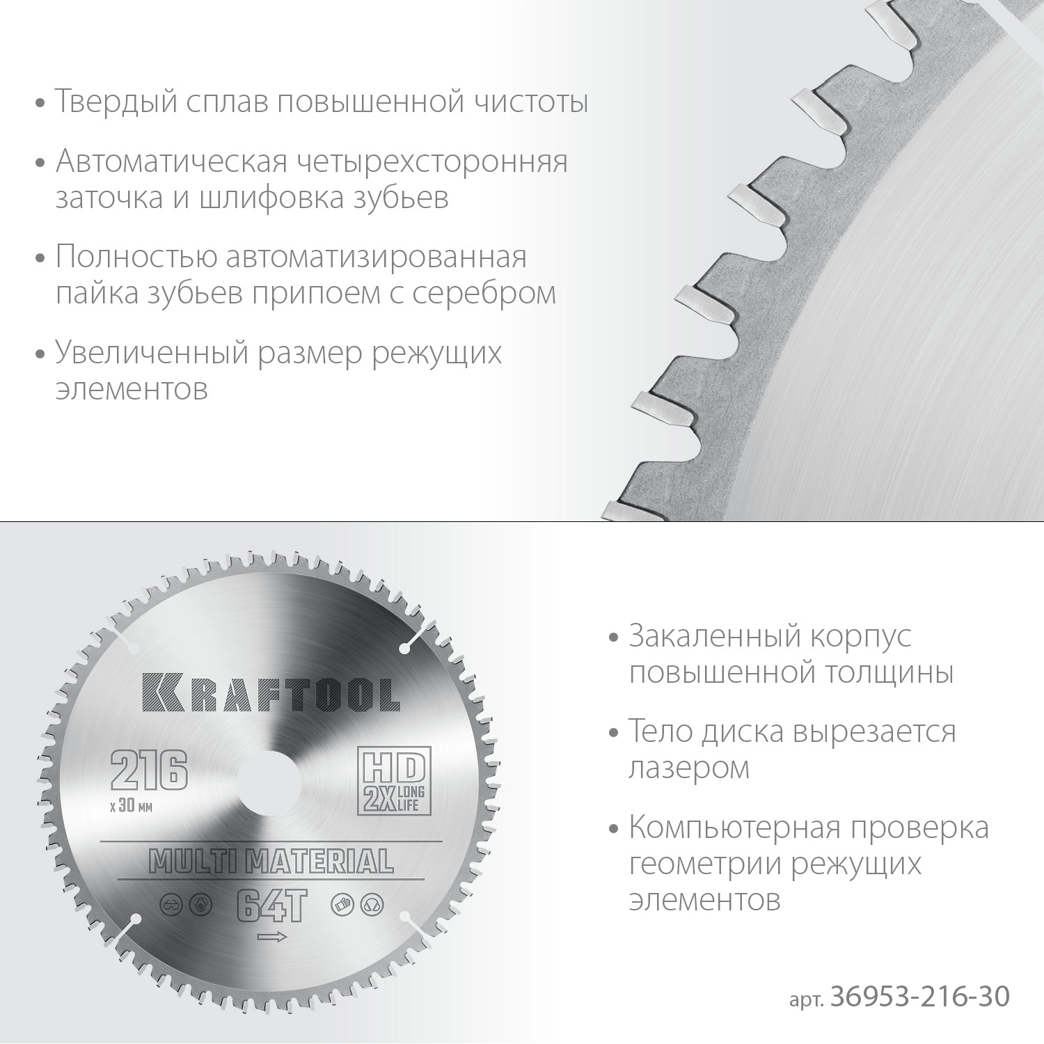 ПроизводителиДиск пильный 216х30х64Т по алюминию "Multi Material" (36953-216-30) KRAFTOOL