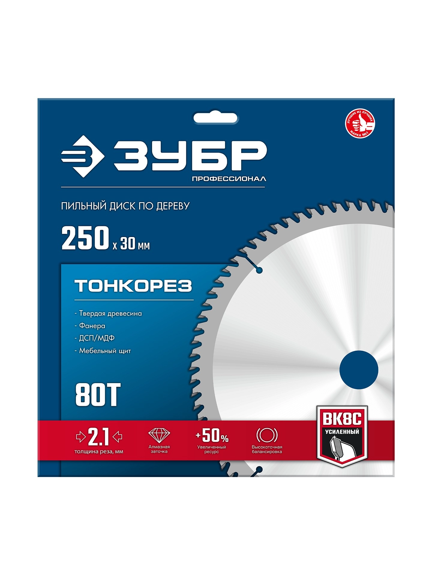 ПроизводителиДиск пильный 250х30x2.1х80Т по дереву "Тонкорез" (36933-250-30-80) ЗУБР