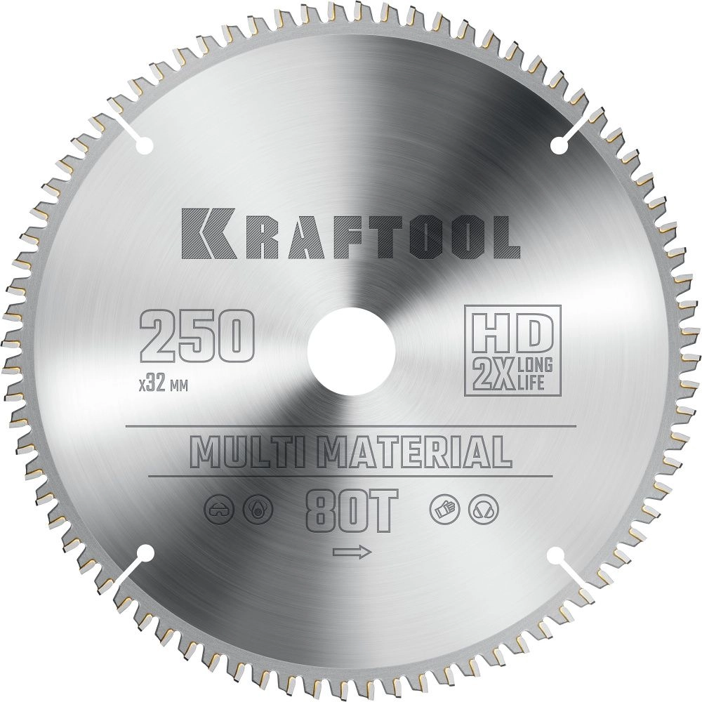 ПроизводителиДиск пильный 250х32х80Т по алюминию "Multi Material" (36953-250-32) KRAFTOOL