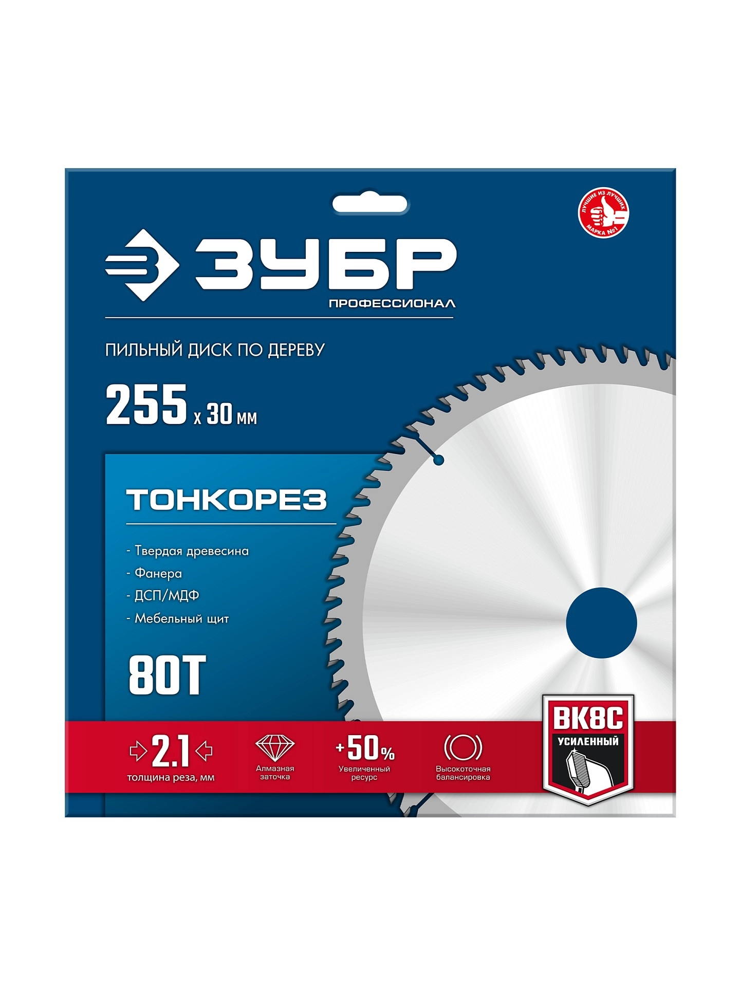 ПроизводителиДиск пильный 255х30x2.1х80Т по дереву "Тонкорез" (36933-255-30-80) ЗУБР