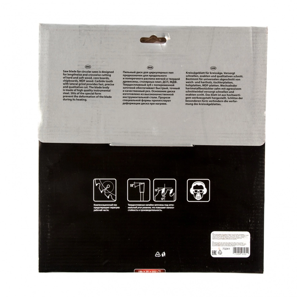 Мелкие зубья с попеременной заточкой обеспечивают точность, качество реза и получение чистых кромок, диск подходит для бытового и профессионального применения.