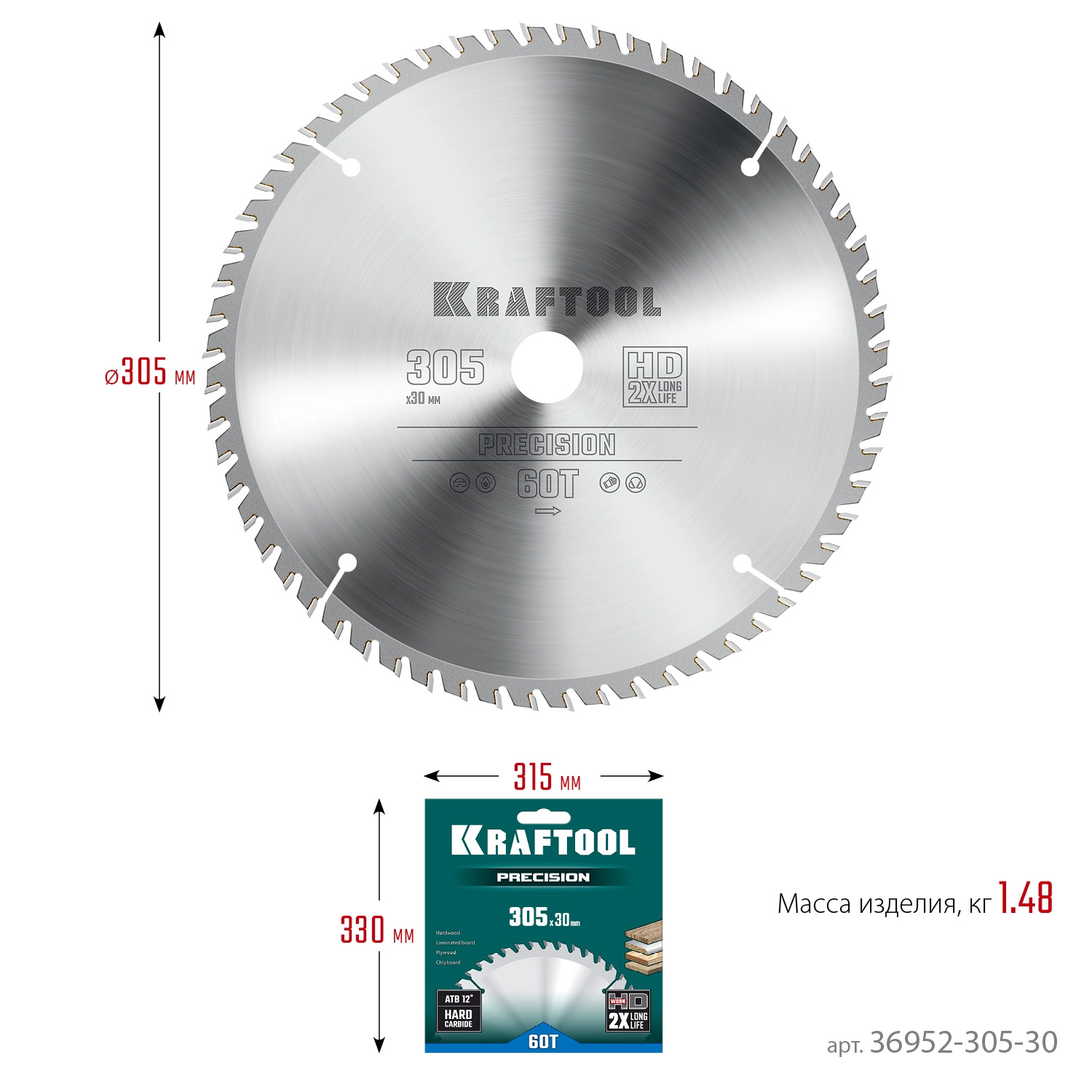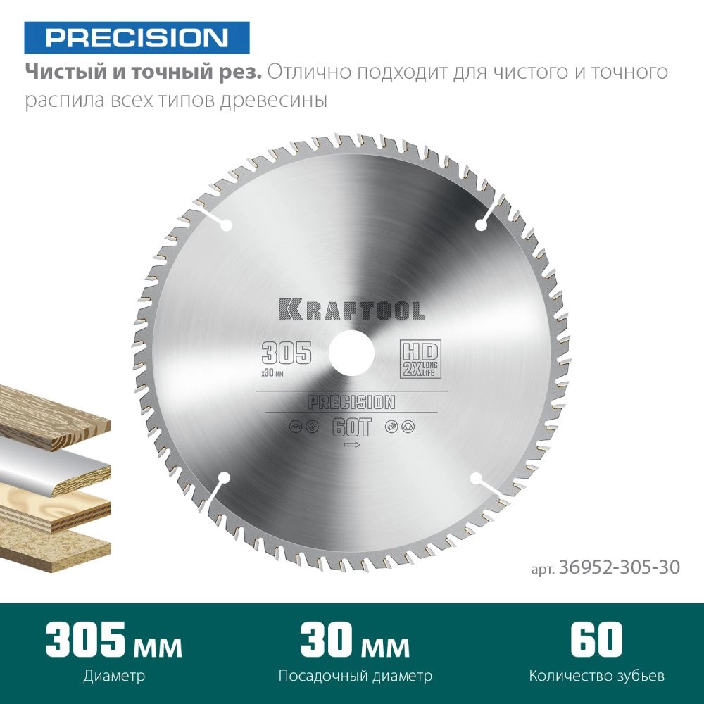 ПроизводителиДиск пильный 305х30х3.2х60Т по дереву "PRECISSION" (36952-305-30) KRAFTOOL
