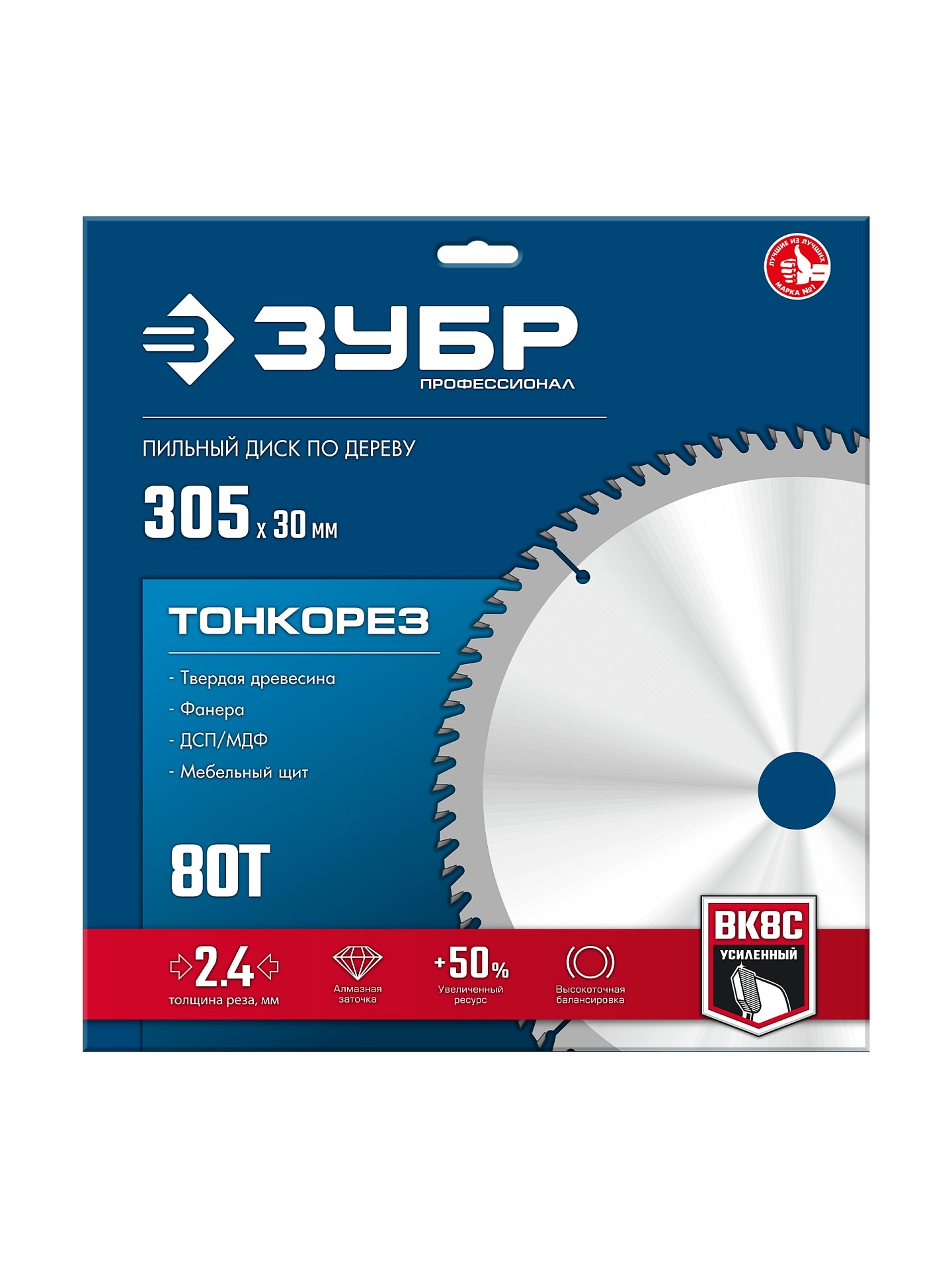 ПроизводителиДиск пильный 305х30x2.4х80Т по дереву "Тонкорез" (36933-305-30-80) ЗУБР