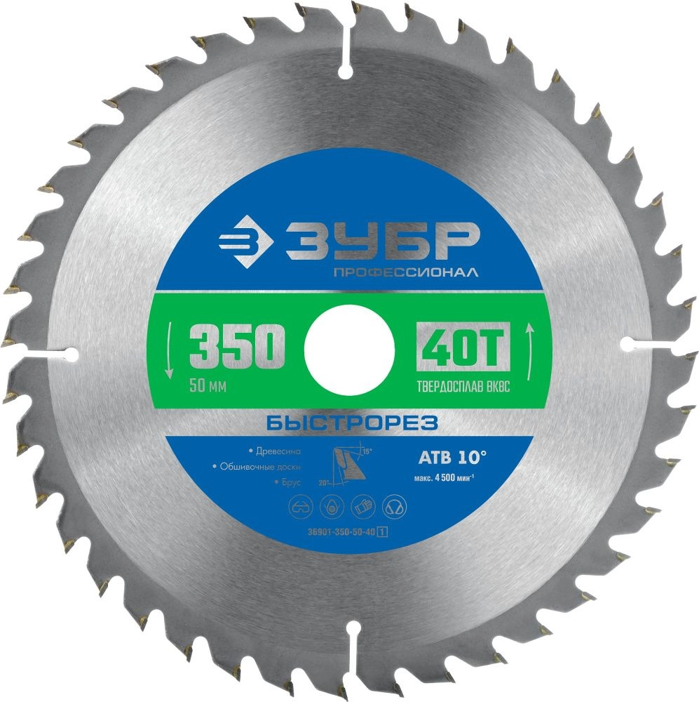 ПроизводителиДиск пильный 350х50х40Т по дереву "Быстрорез" (36901-350-50-40_z01) ЗУБР