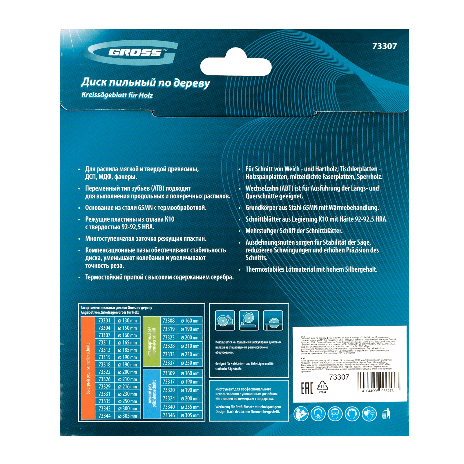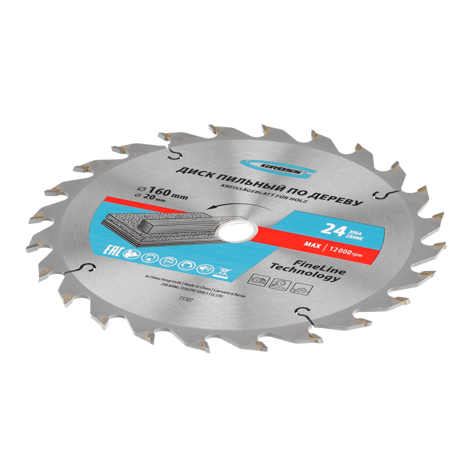 ПроизводителиДиск пильный 160х16/20х24T по дереву (73307) GROSS