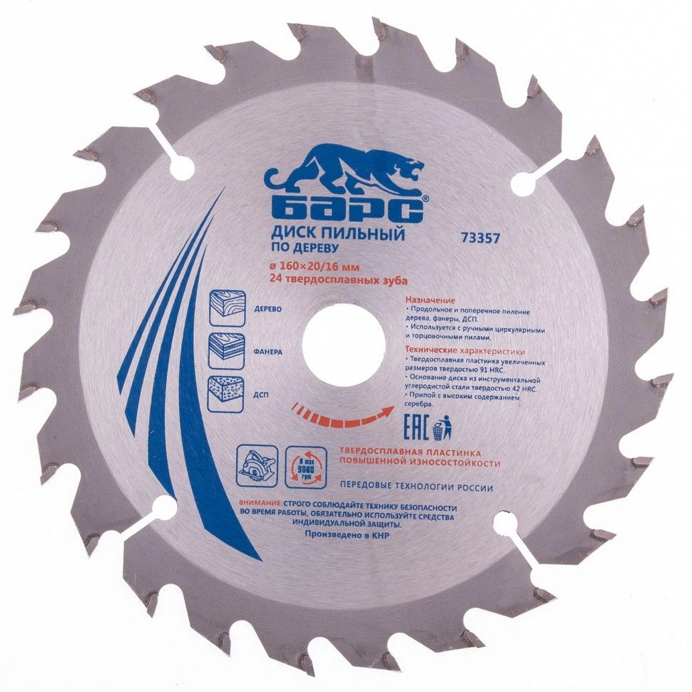 ПроизводителиДиск пильный 160х16/20х24T по дереву (73357) БАРС