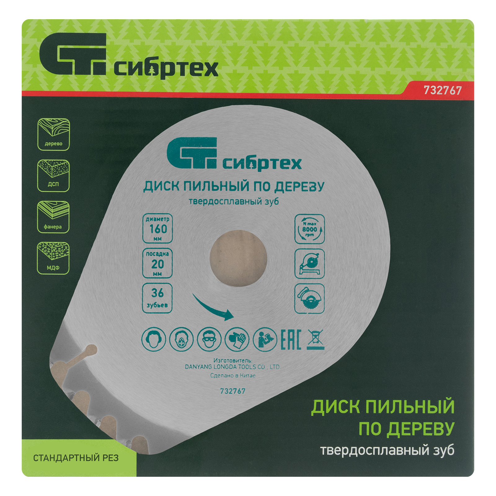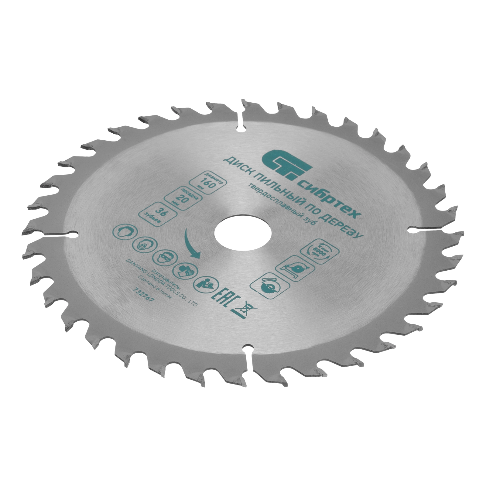 ПроизводителиДиск пильный 160х16/20х36T по дереву (732767) СИБРТЕХ