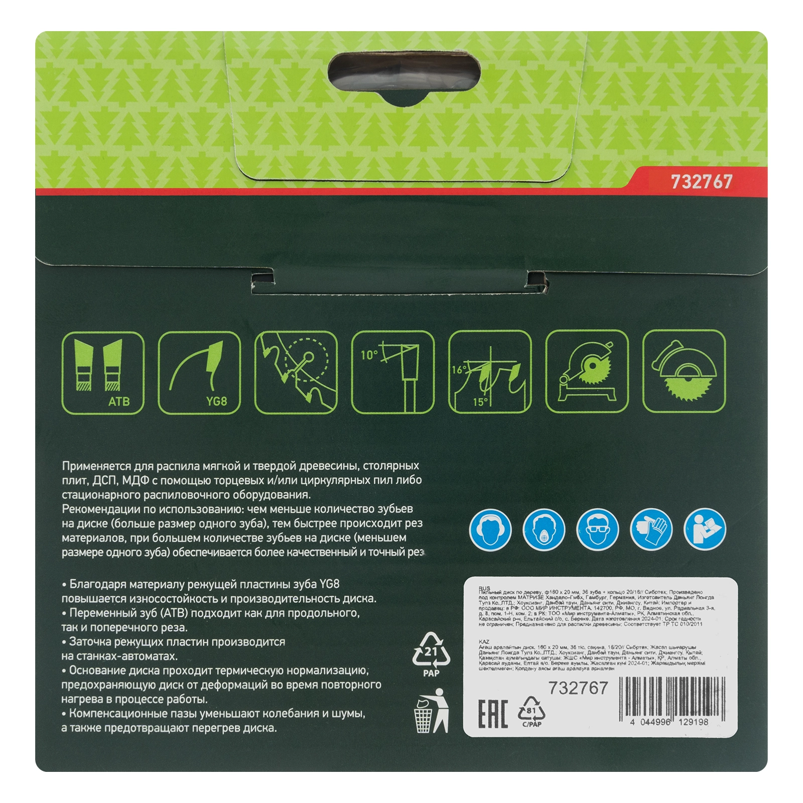 Тип зубьев АТВ делает диск универсальным и позволяет производить как продольный, так и поперечный рез материалов.