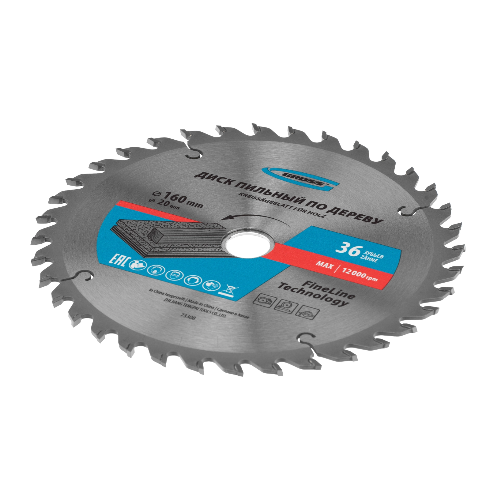 ПроизводителиДиск пильный 160х16/20х36T по дереву (73308) GROSS