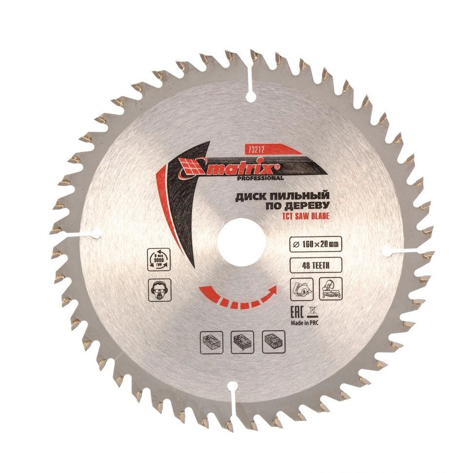 ПроизводителиДиск пильный 160х16/20х48T по дереву (73212) MATRIX