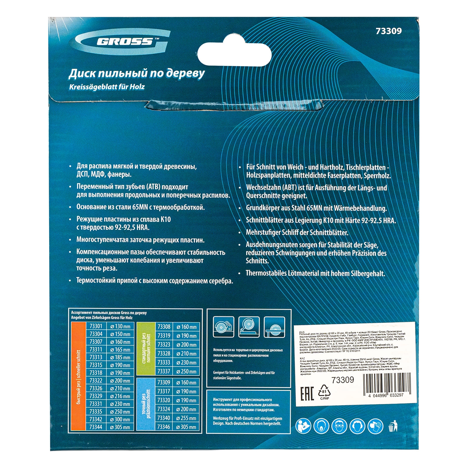 ПроизводителиДиск пильный 160х16/20х48T по дереву (73309) GROSS