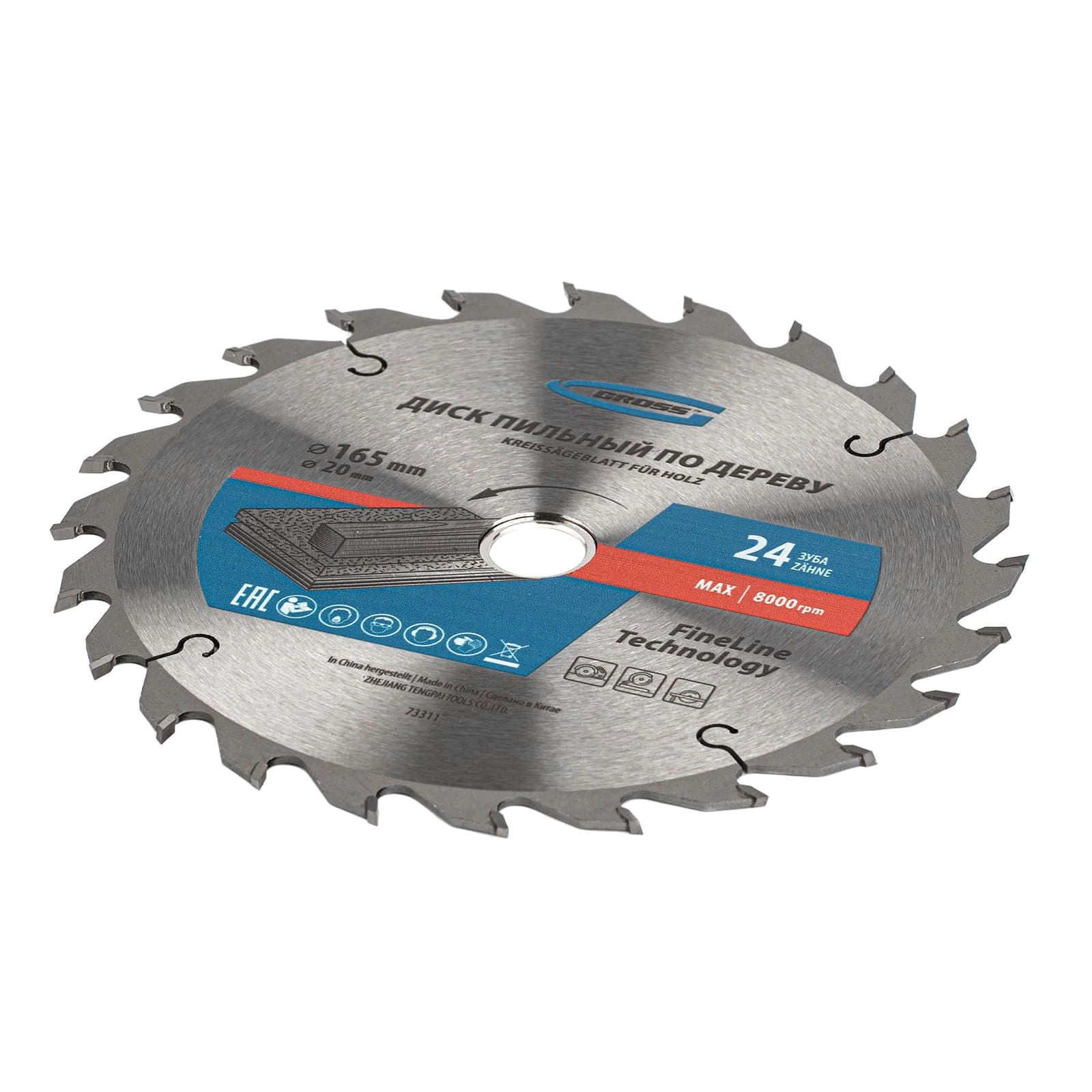 ПроизводителиДиск пильный 165х16/20х24T по дереву (73311) GROSS