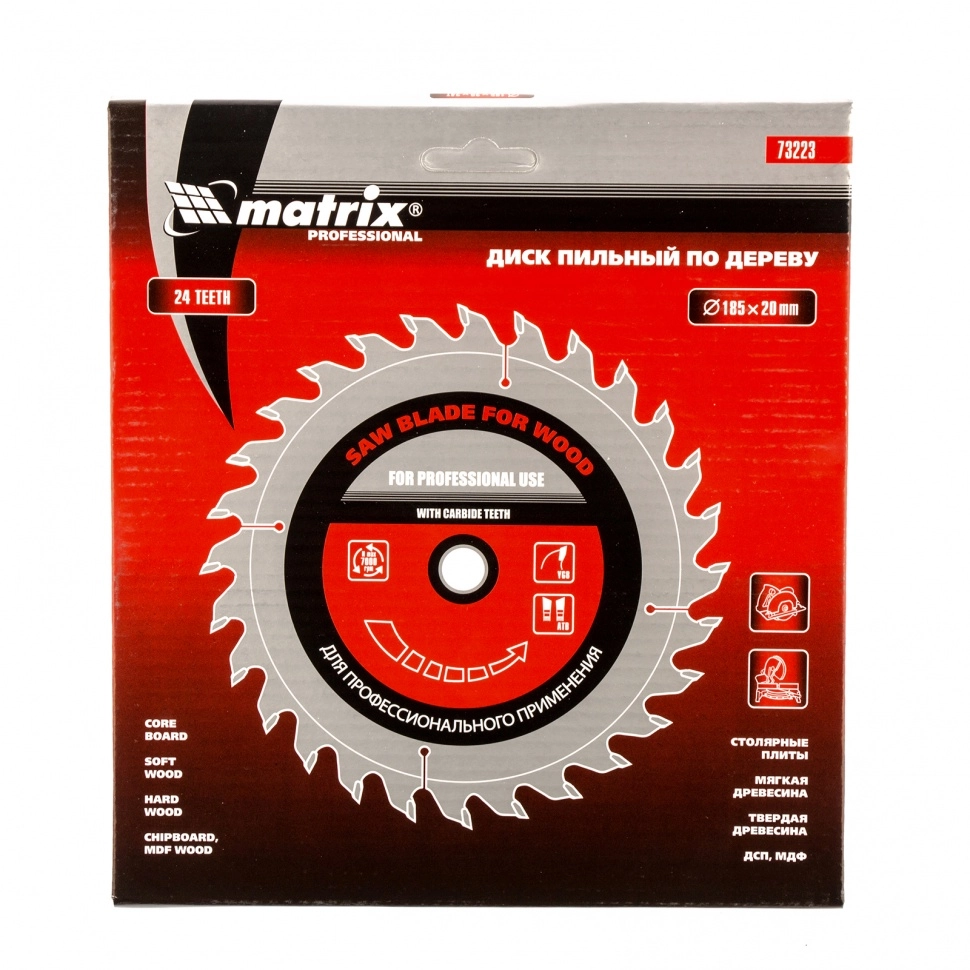 ПроизводителиДиск пильный 185х16/20х24T по дереву (73223) MATRIX