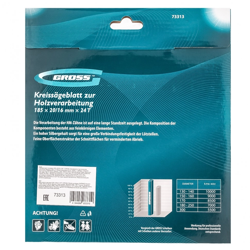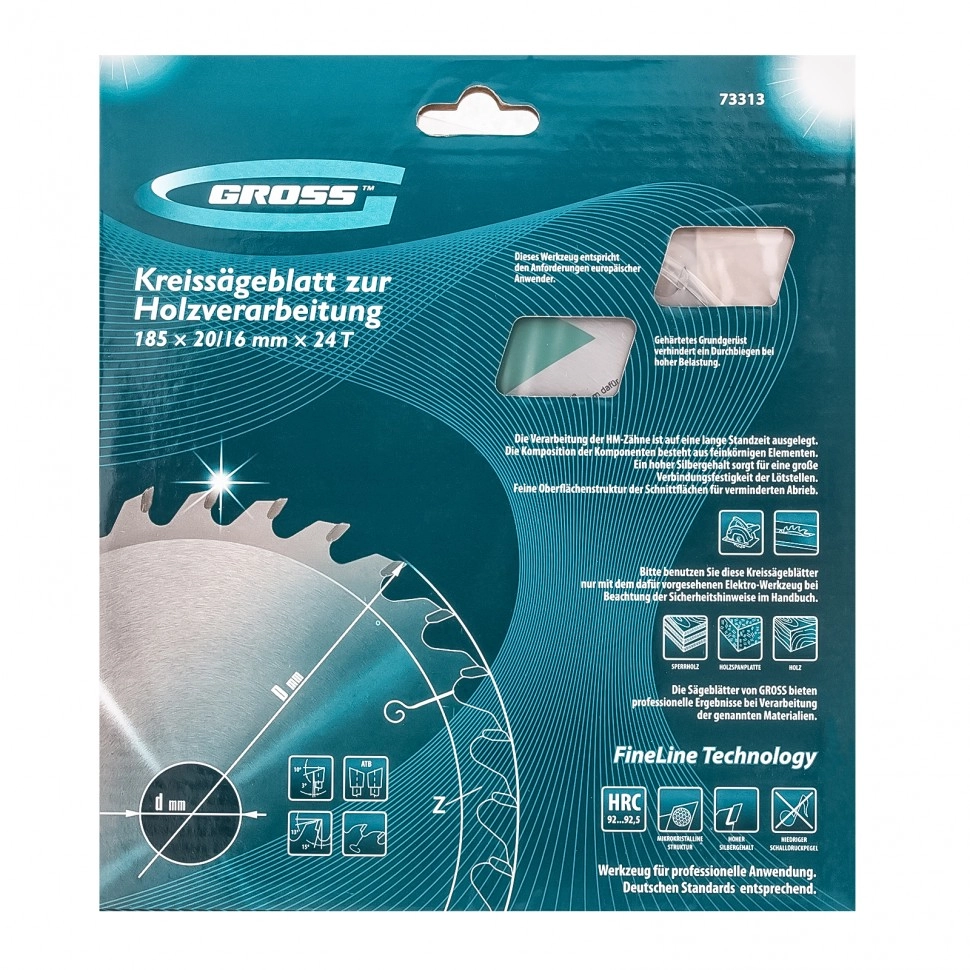 ПроизводителиДиск пильный 185х16/20х24T по дереву (73313) GROSS
