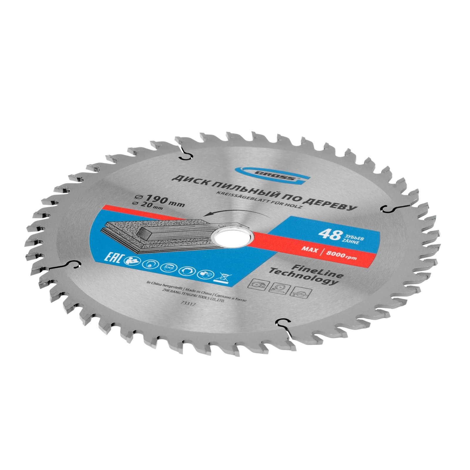 ПроизводителиДиск пильный 190х16/20х48T по дереву (73317) GROSS