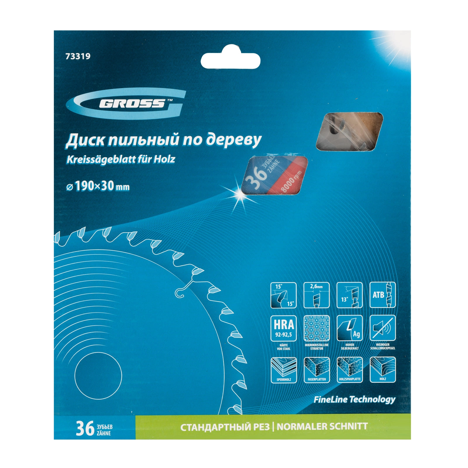 Высокое качество работ — 36 средних зубьев и режущие кромки, прошедшие многоступенчатую автоматическую заточку, обеспечивают оптимальное соотношение скорости и качества реза.
