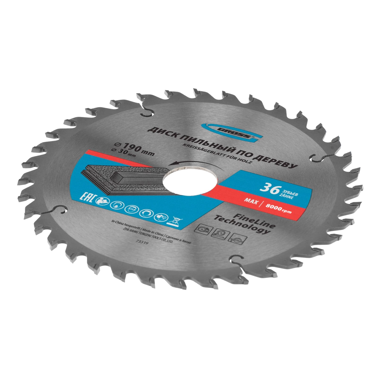 ПроизводителиДиск пильный 190х30х36T по дереву (73319) GROSS