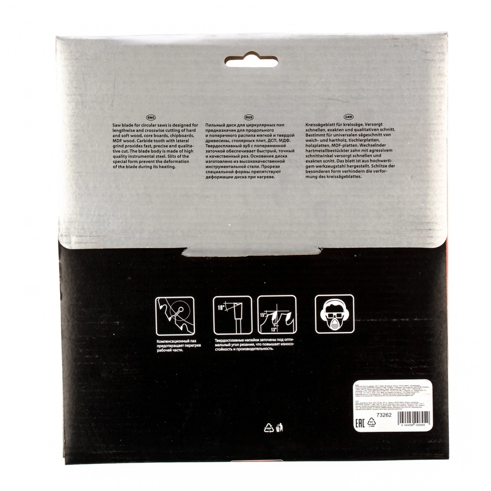 Средние зубья с попеременной заточкой обеспечивают оптимальное соотношение скорости и качества реза, диск подходит для бытового и профессионального применения.