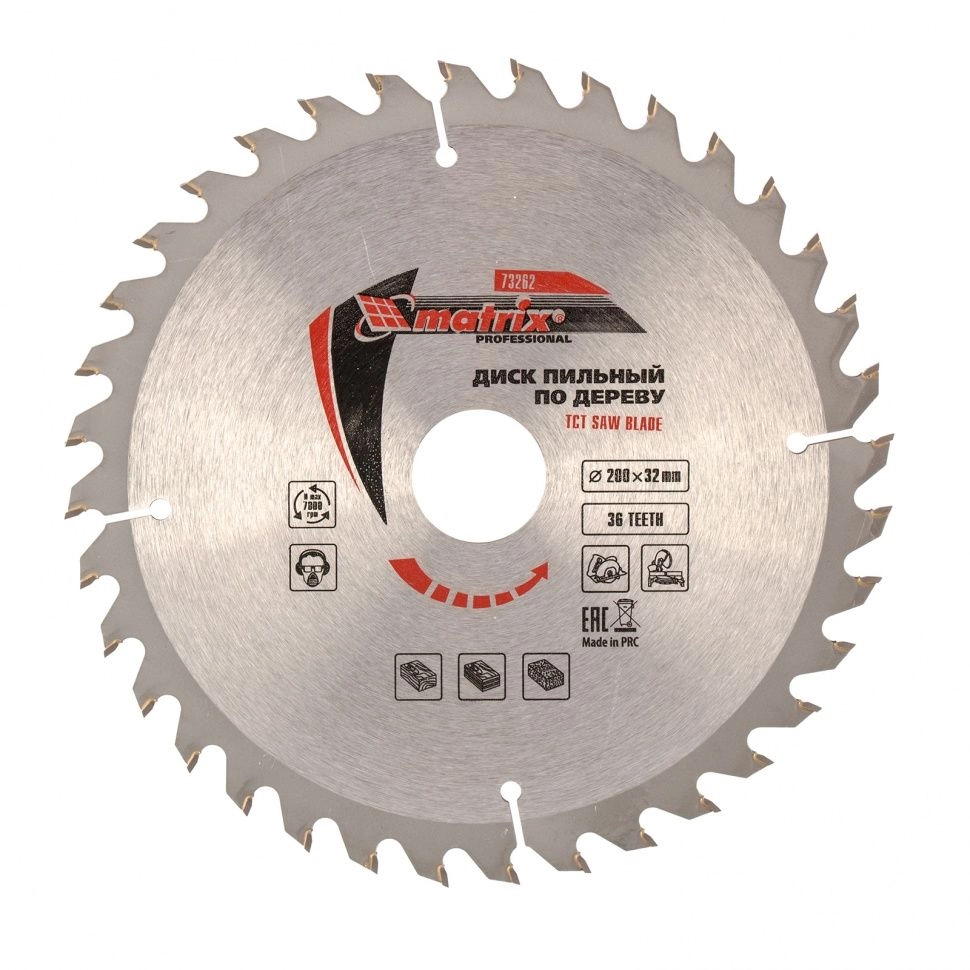ПроизводителиДиск пильный 200х30/32х36T по дереву (73262) MATRIX