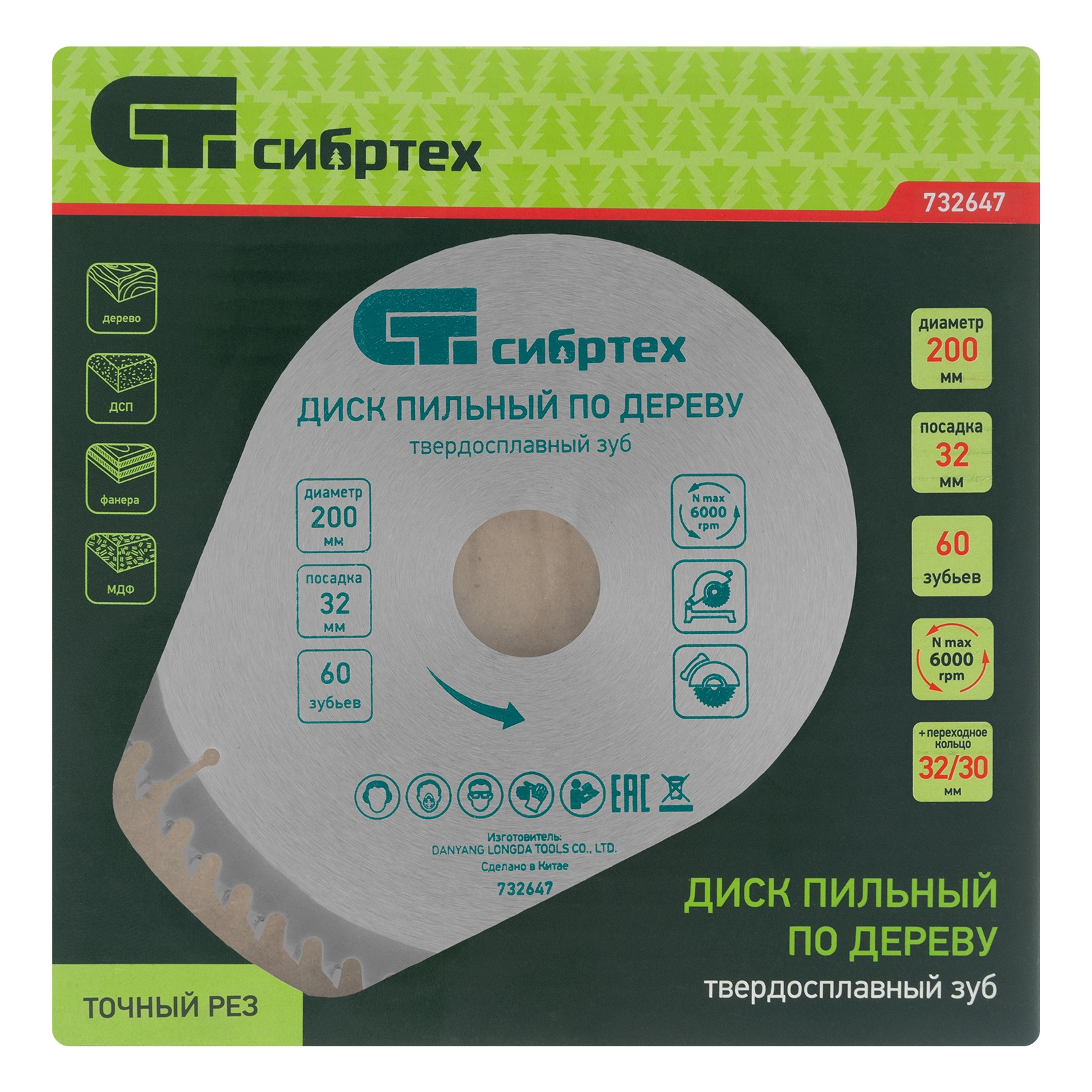 ПроизводителиДиск пильный 200х30/32х60T по дереву (732647) СИБРТЕХ