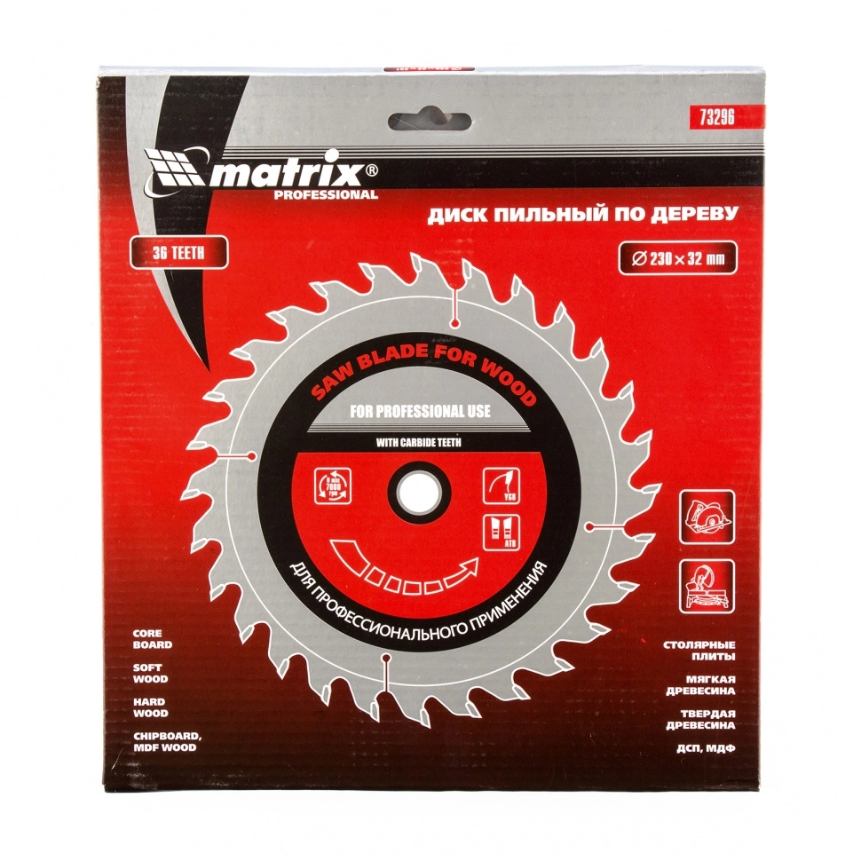 ПроизводителиДиск пильный 230х30/32х36T по дереву (73296) MATRIX