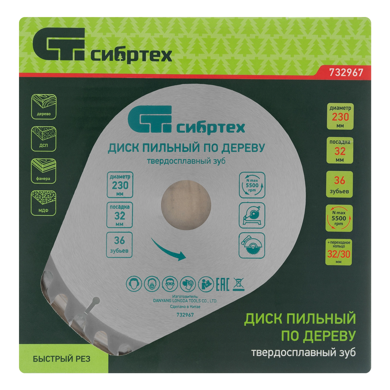 ПроизводителиДиск пильный 230х30/32х36T по дереву (732967) СИБРТЕХ