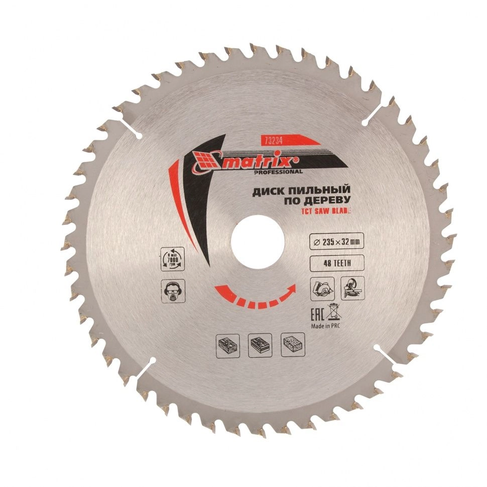 ПроизводителиДиск пильный 235х30/32х48T по дереву (73234) MATRIX