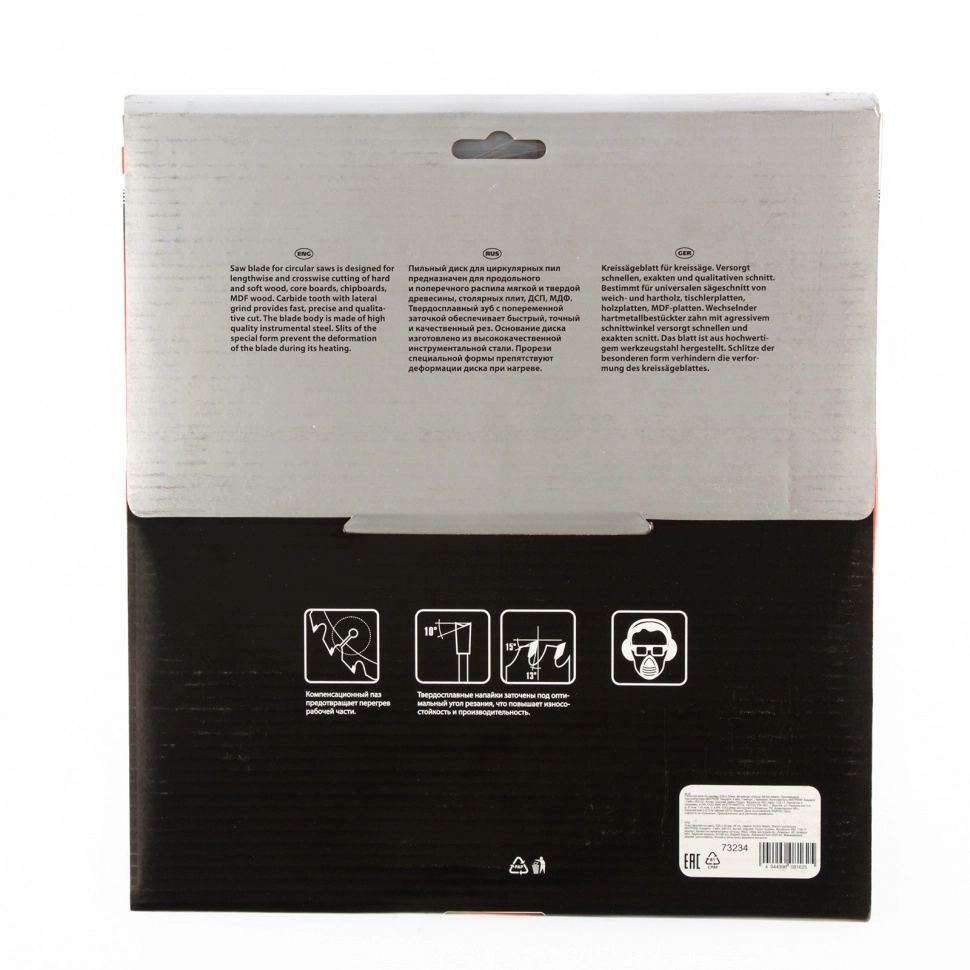 Мелкие зубья с попеременной заточкой обеспечивают точность, качество реза и получение чистых кромок, диск подходит для бытового и профессионального применения.