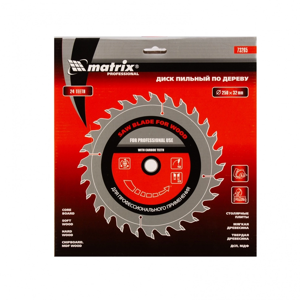 ПроизводителиДиск пильный 250х32х24T по дереву (73265) MATRIX