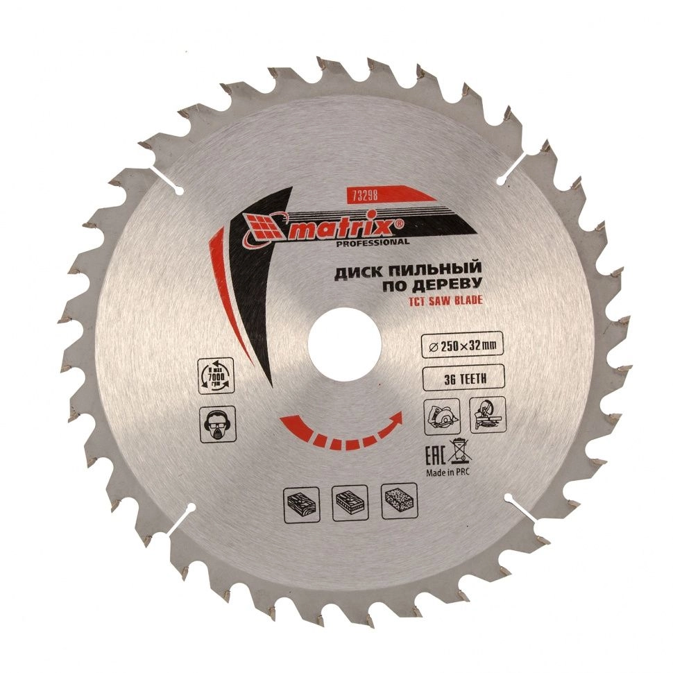 ПроизводителиДиск пильный 250х30/32х36T по дереву (73298) MATRIX