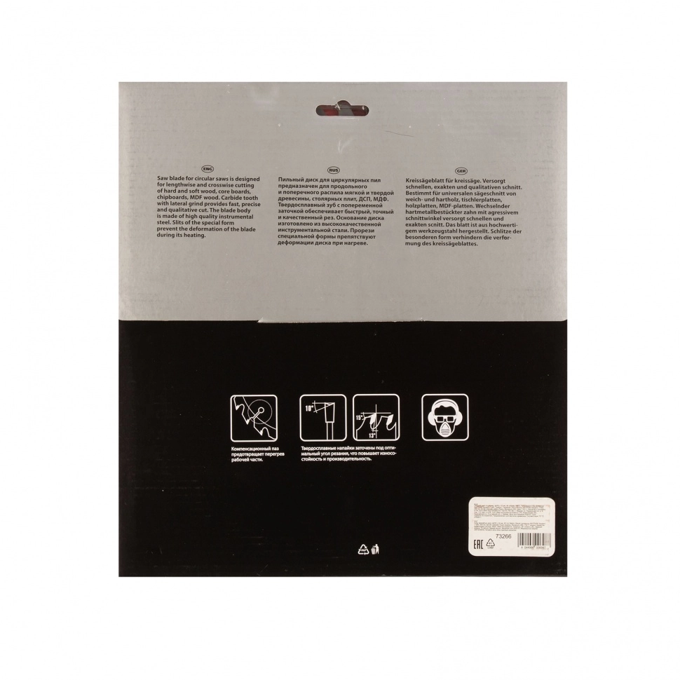 Мелкие зубья с попеременной заточкой обеспечивают точность, качество реза и получение чистых кромок, диск подходит для бытового и профессионального применения.