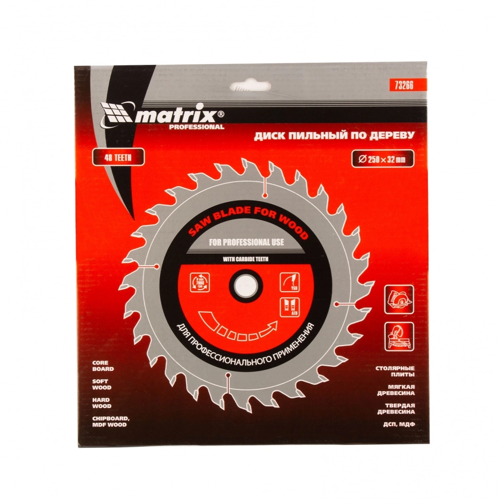 ПроизводителиДиск пильный 250х32х48T по дереву (73266) MATRIX