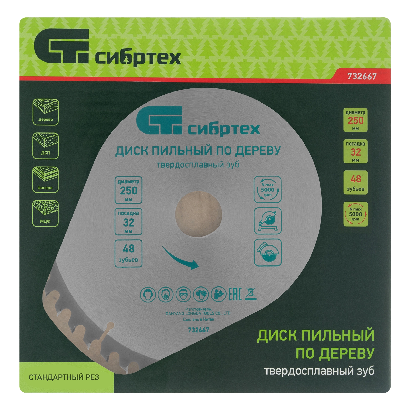 ХарактеристикиАртикул 732667Бренды СИБРТЕХСтрана производства КитайКоличество зубьев 48Диаметр, мм 250Посадочный диаметр 32Пильный диск Сибртех 732667, ф250 х 32 мм, с 48 зубьями используется с торцовочными и циркулярными пилами, а также с распиловочными станками.