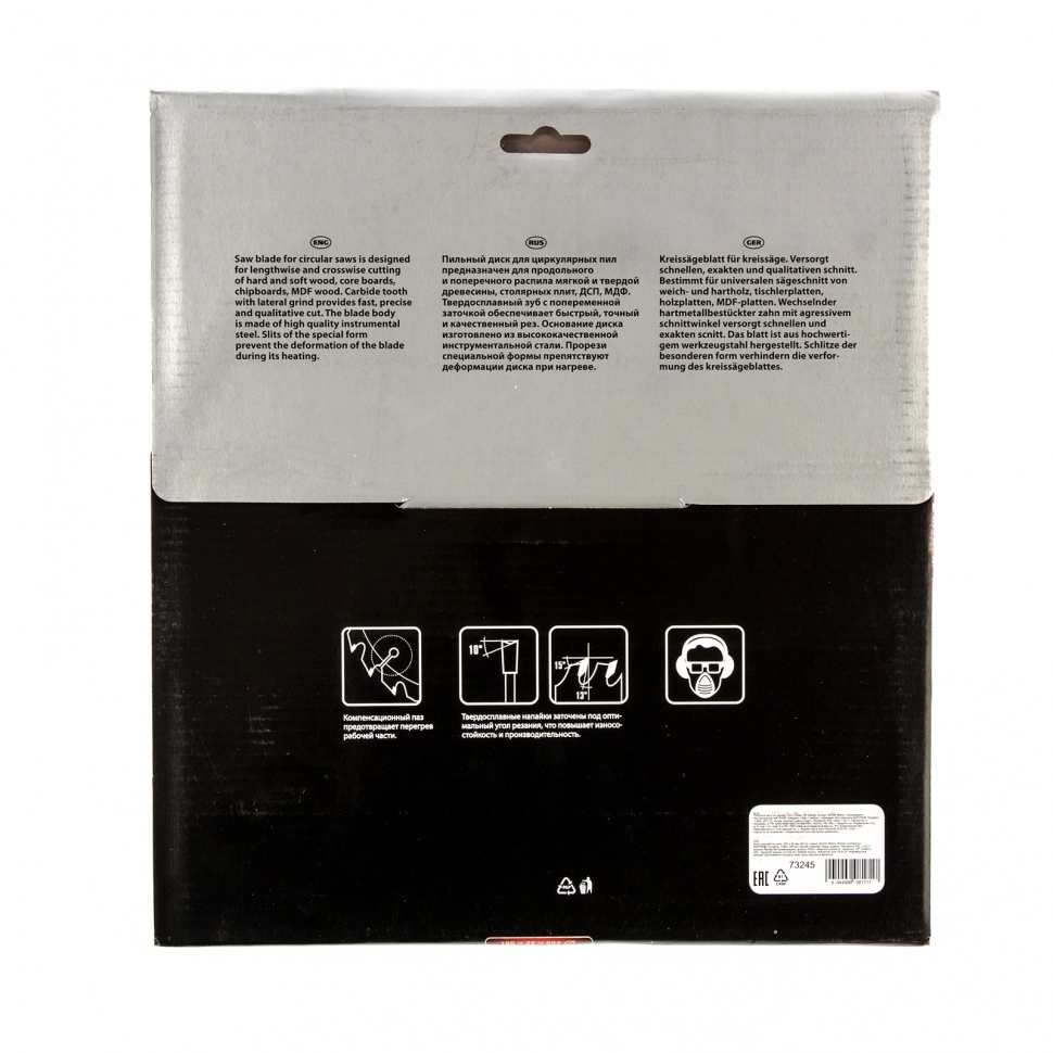 Мелкие зубья с попеременной заточкой обеспечивают точность, качество реза и получение чистых кромок, диск подходит для бытового и профессионального применения.