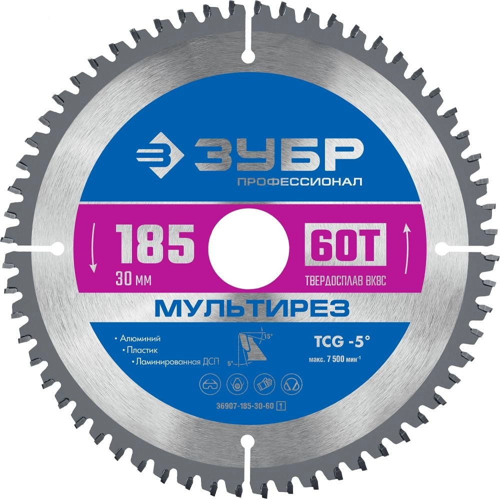 ПроизводителиДиск по алюминию пильный 60Т, 185х30мм, Мультирез, Профессионал (36907-185-30-60_z01) ЗУБР