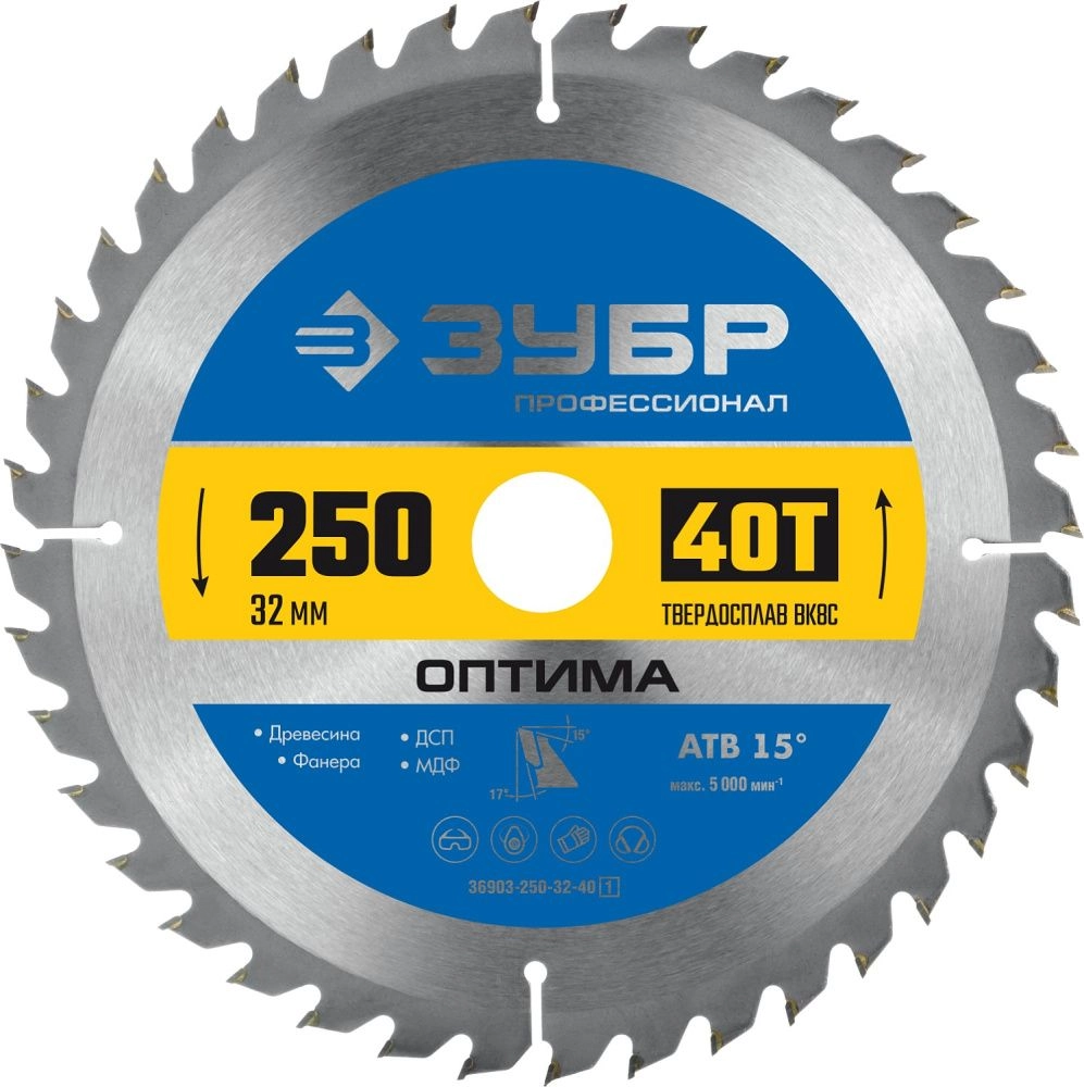 ПроизводителиДиск по дереву пильный 40Т, 250х32мм, Оптима, Профессионал (36903-250-32-40_z01) ЗУБР