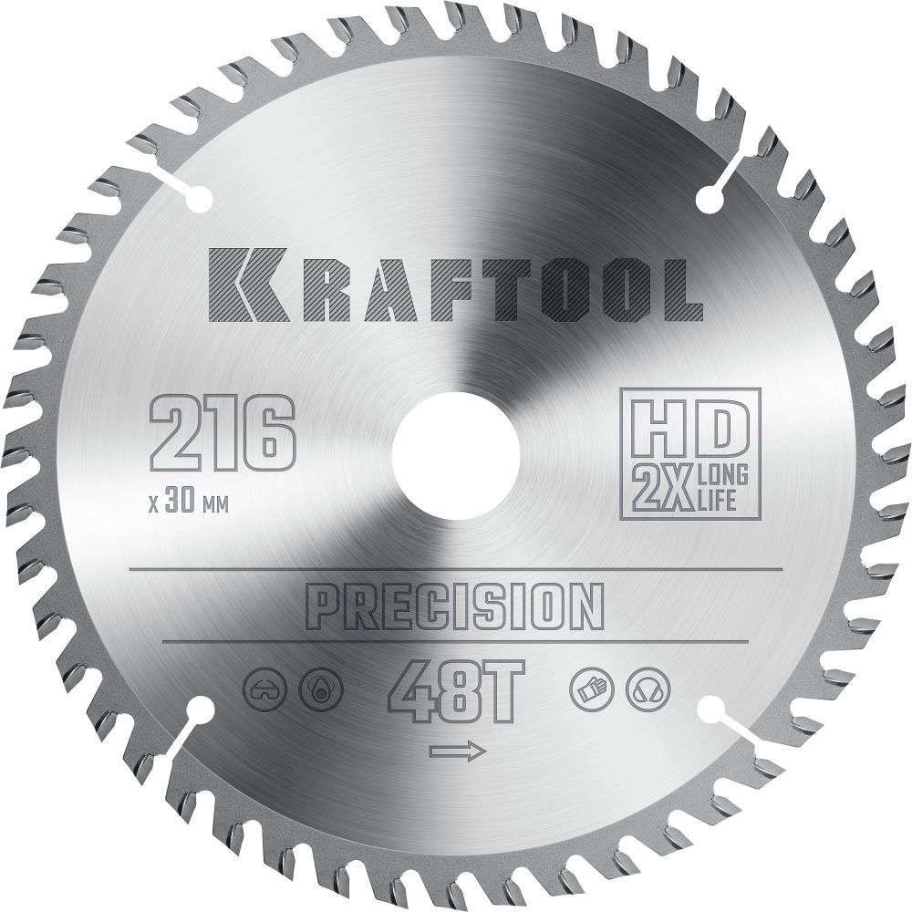 ПроизводителиДиск по дереву пильный 48Т, 216х30мм, Precision, (36952-216-30) KRAFTOOL