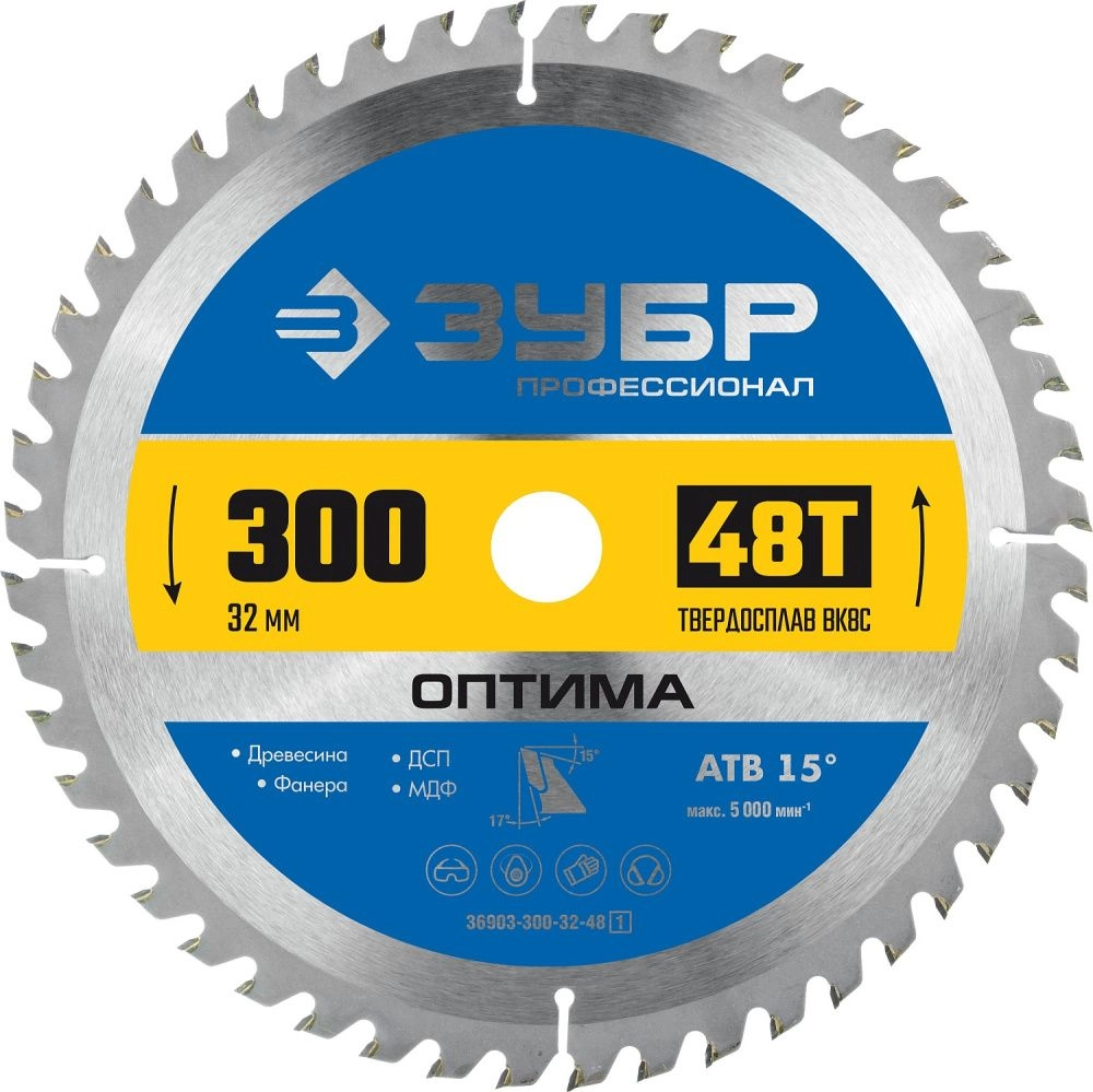 ПроизводителиДиск по дереву пильный 48Т, 300х32мм, 48Т Оптима, Профессионал (36903-300-32-48_z01) ЗУБР