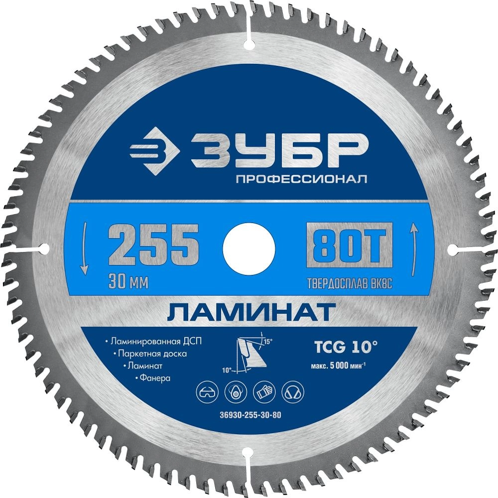 ПроизводителиДиск по ламинату пильный 80Т, 255х30мм, Ламинат, Профессионал (36930-255-30-80) ЗУБР