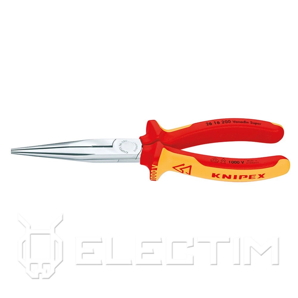 ПроизводителиДлинногубцы с реж. кромк. диэл., полукруглые прям. губки, 200мм, хром., 2-комп.рук. (2616200) KNIPEX