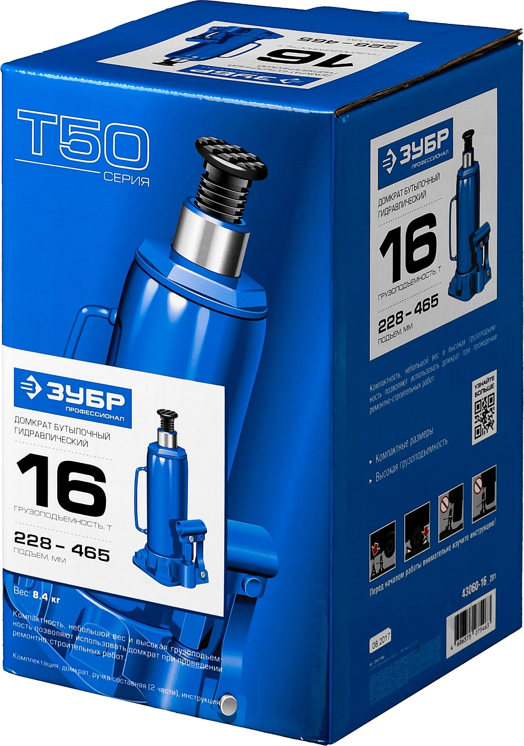 ПроизводителиДомкрат гидравлический бутылочный, 16т., 228-465 мм "ПРОФЕССИОНАЛ" (43060-16_z01) ЗУБР