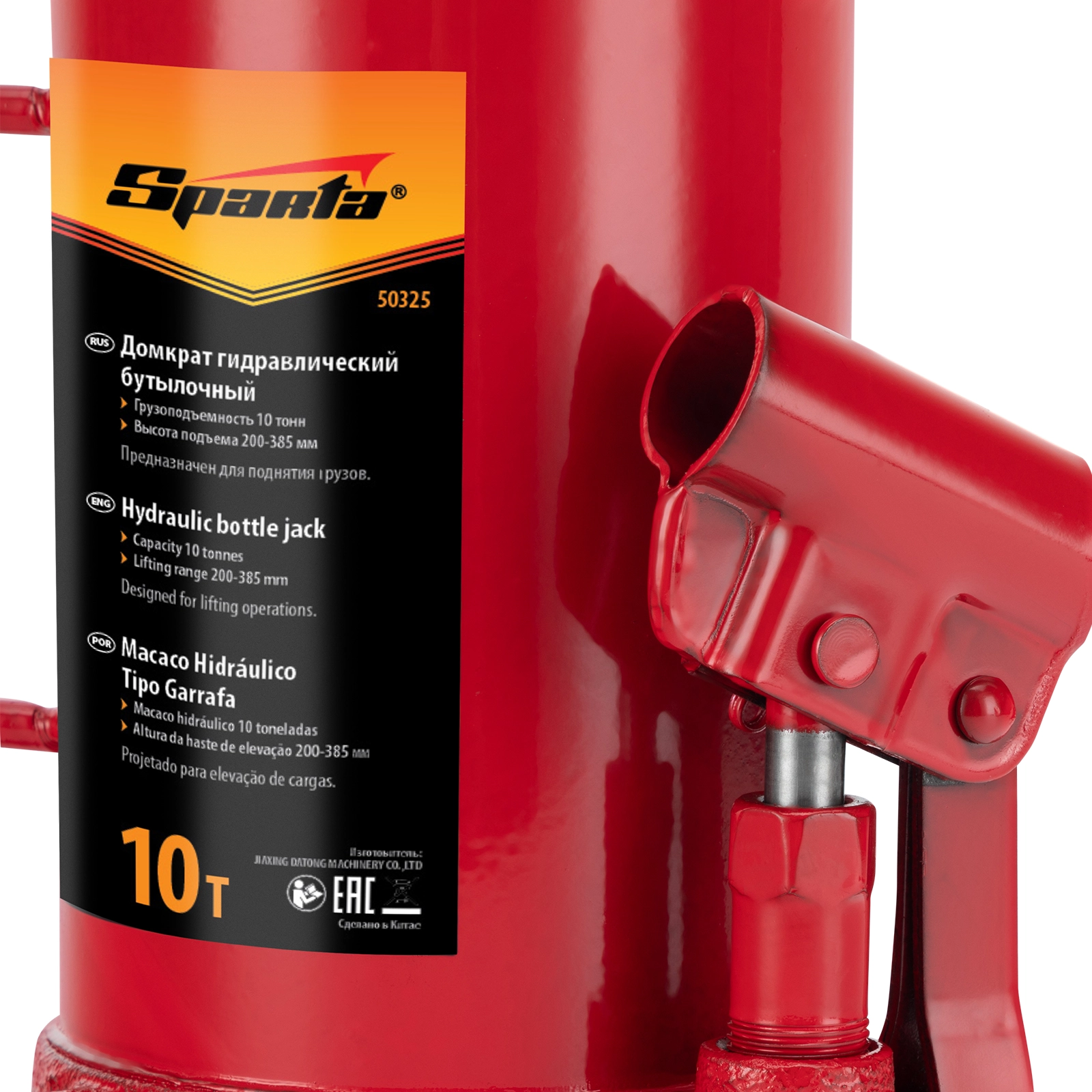 ПроизводителиДомкрат гидравлический бутылочный, 10т, h подъема 200-385мм (50325) SPARTA