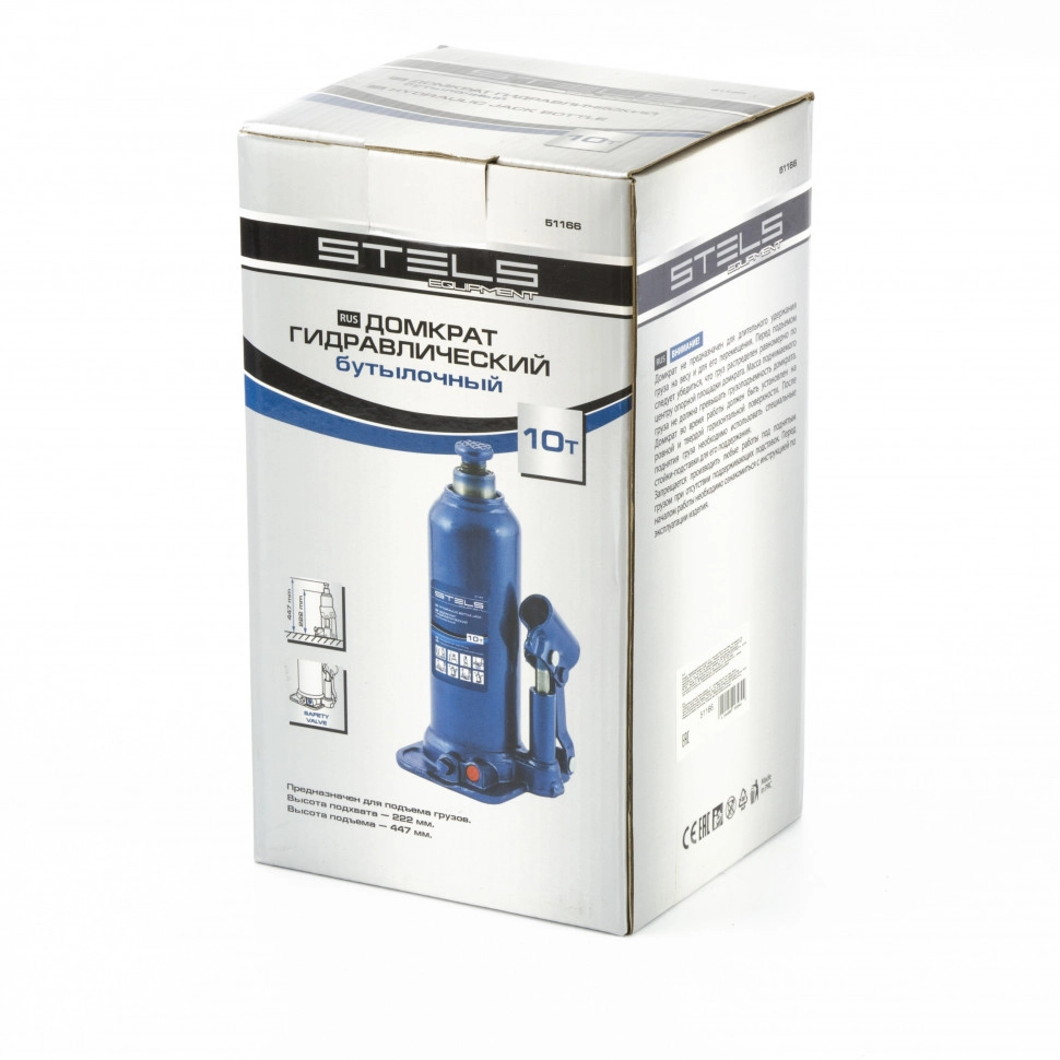 ПроизводителиДомкрат гидравлический бутылочный, 10т, h подъема 222-447мм (51166) STELS
