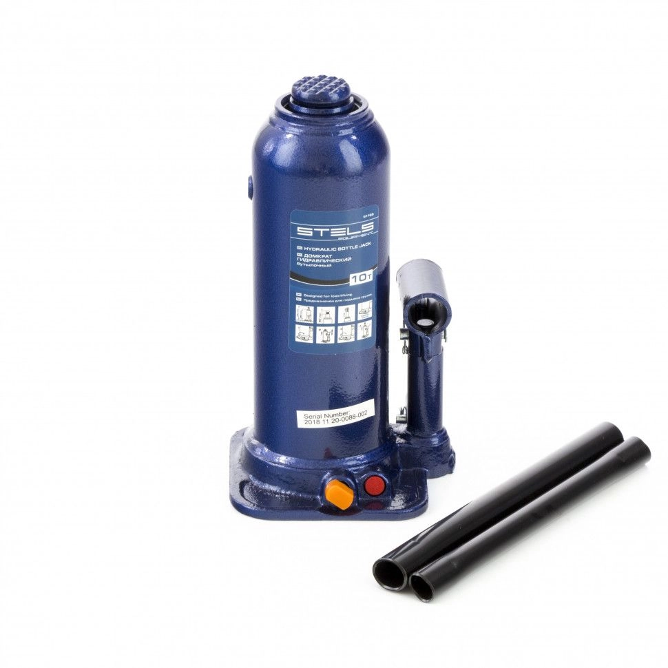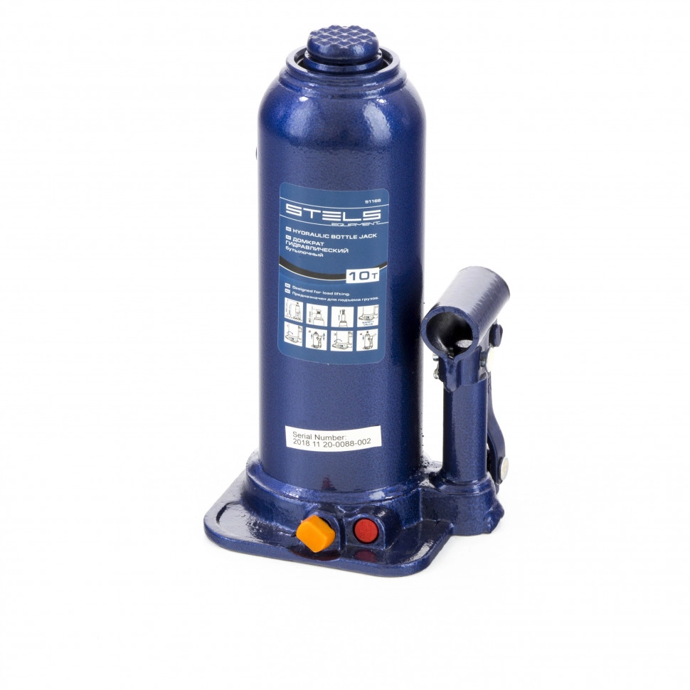 Гидравлический бутылочный домкрат Stels 51166 применяется для быстрого поднятия грузов весом до 10 т на высоту до 447 мм.