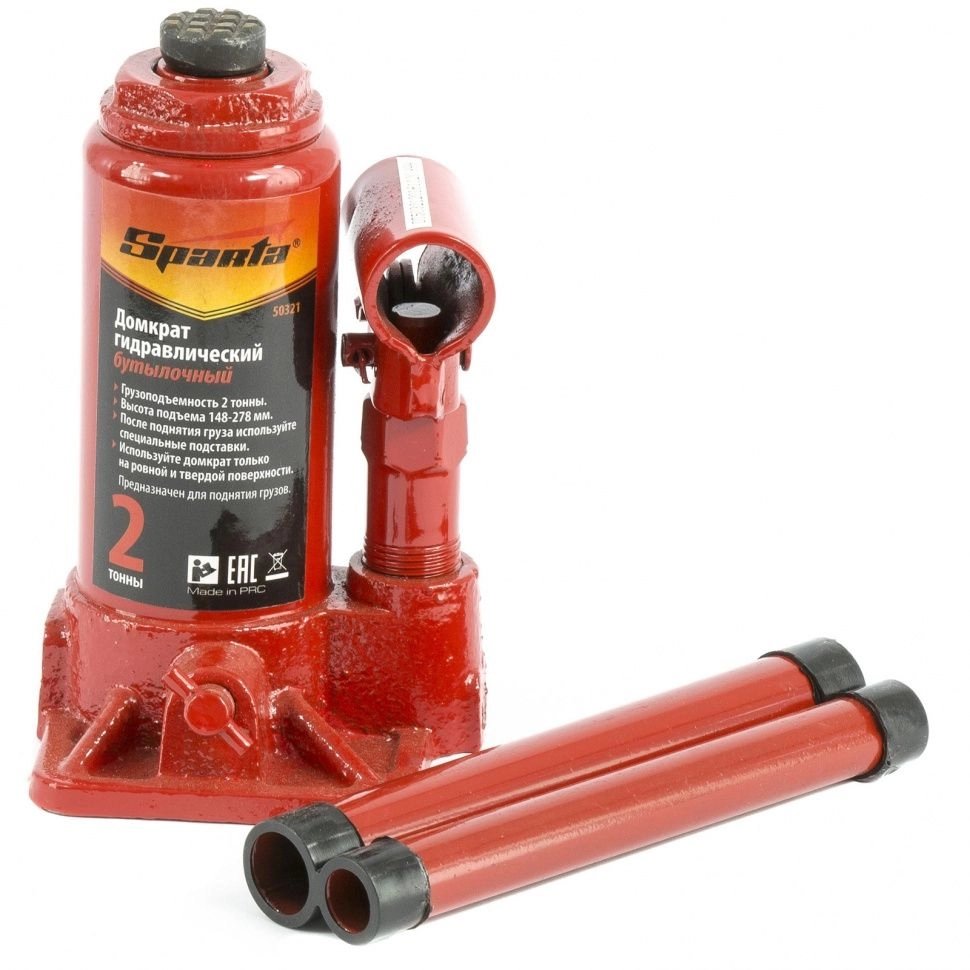 ПроизводителиДомкрат гидравлический бутылочный, 2т, h подъема 148–278мм (50321) SPARTA