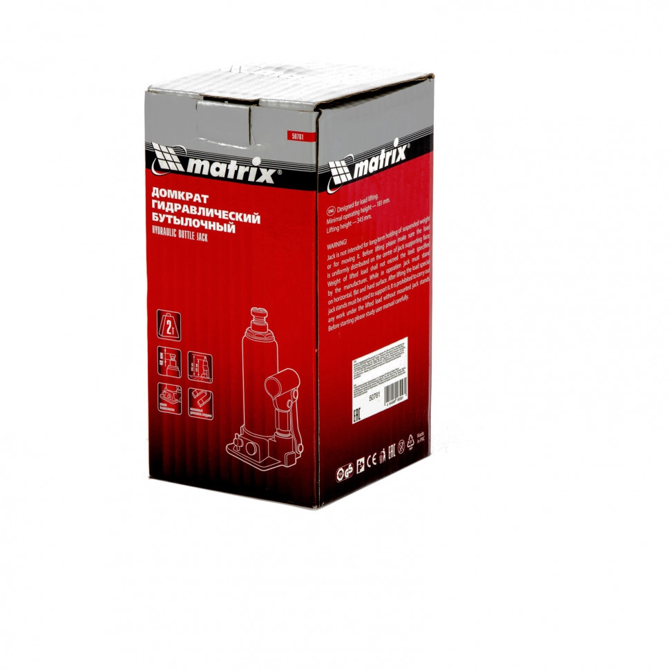 ПроизводителиДомкрат гидравлический бутылочный, 2т, h подъема 181–345мм (50761) MATRIX