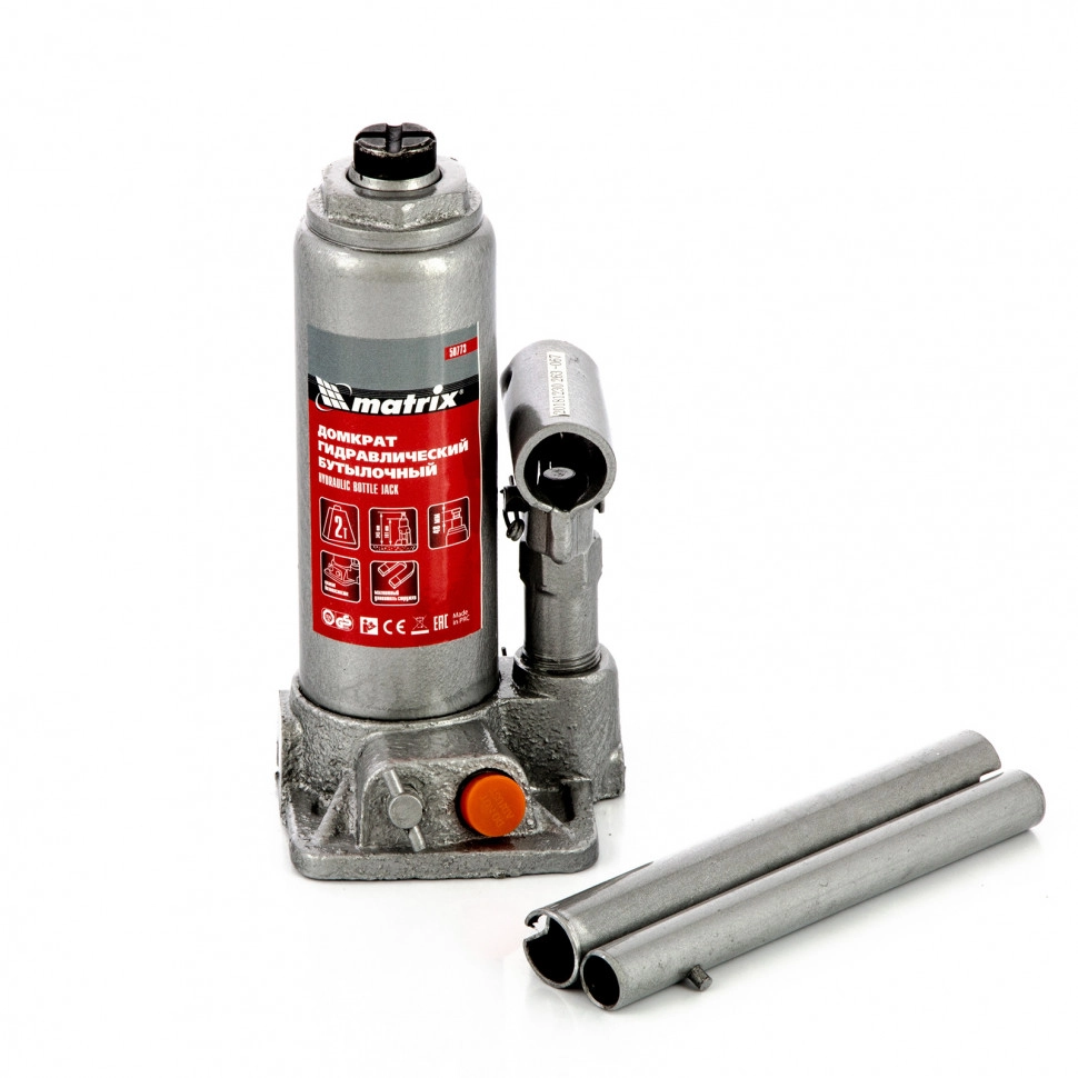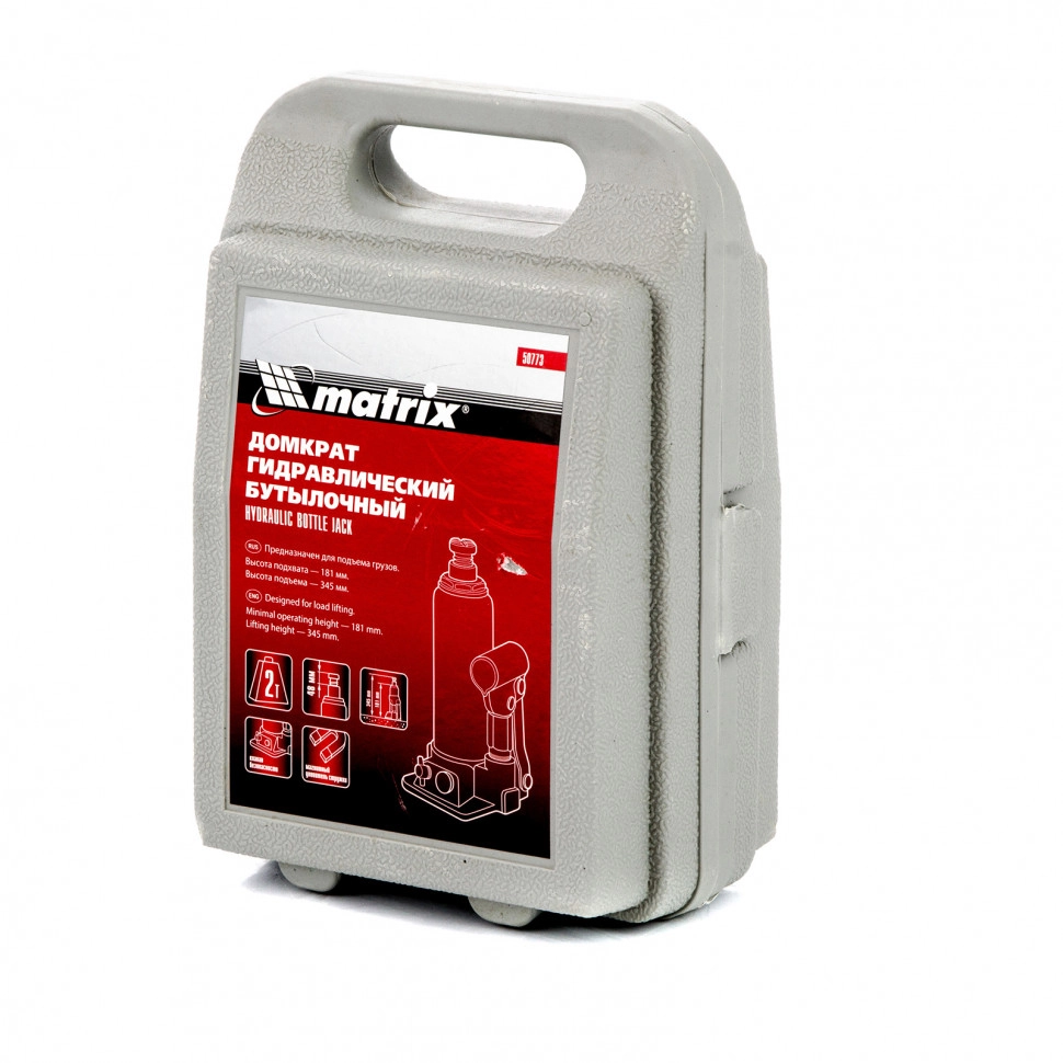 ПроизводителиДомкрат гидравлический бутылочный, 2т, h подъема 181–345мм, в пласт. кейсе (50773) MATRIX