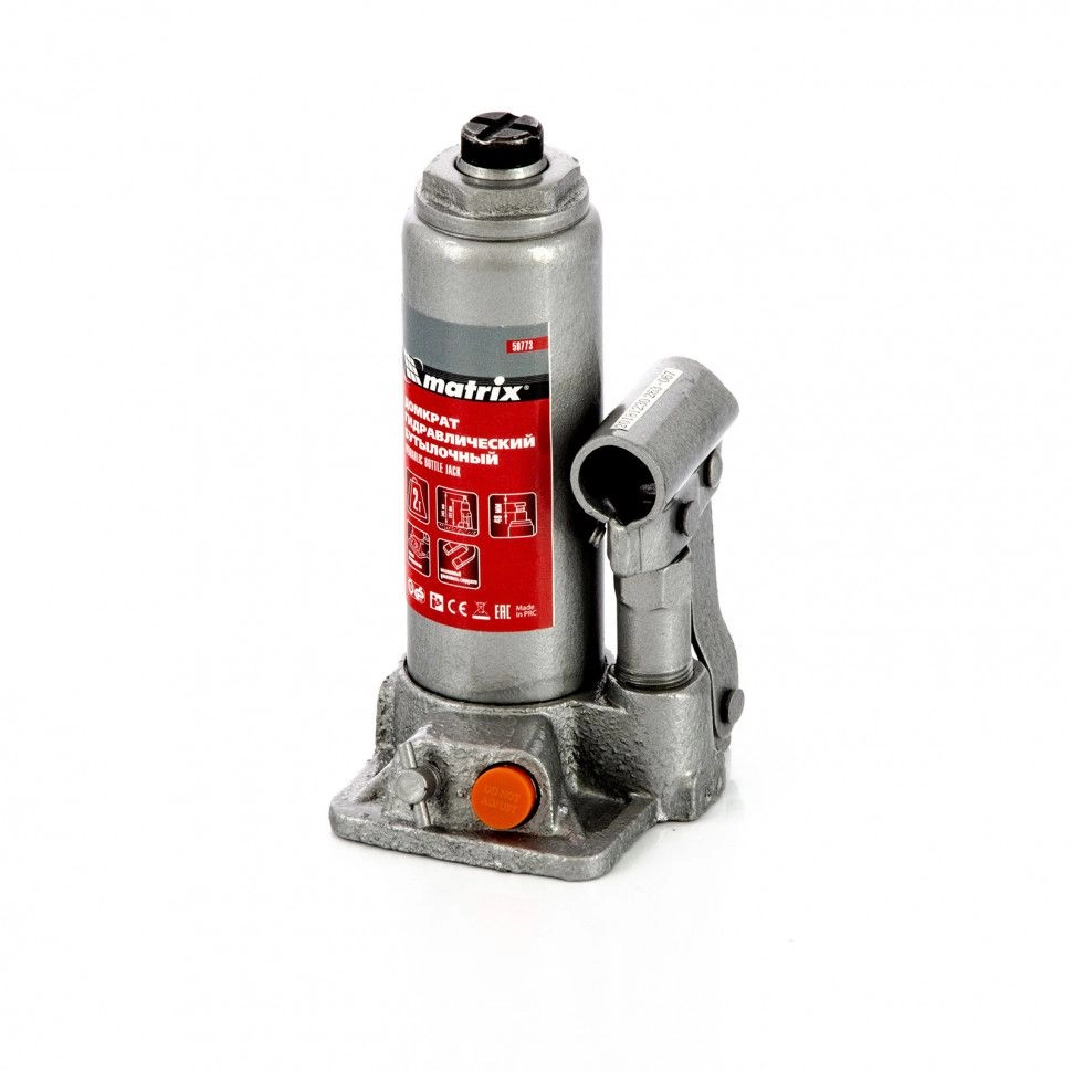 Гидравлический бутылочный домкрат Matrix 50773 обеспечивает быстрое поднятие грузов массой до 2 т на высоту 181-345 мм.