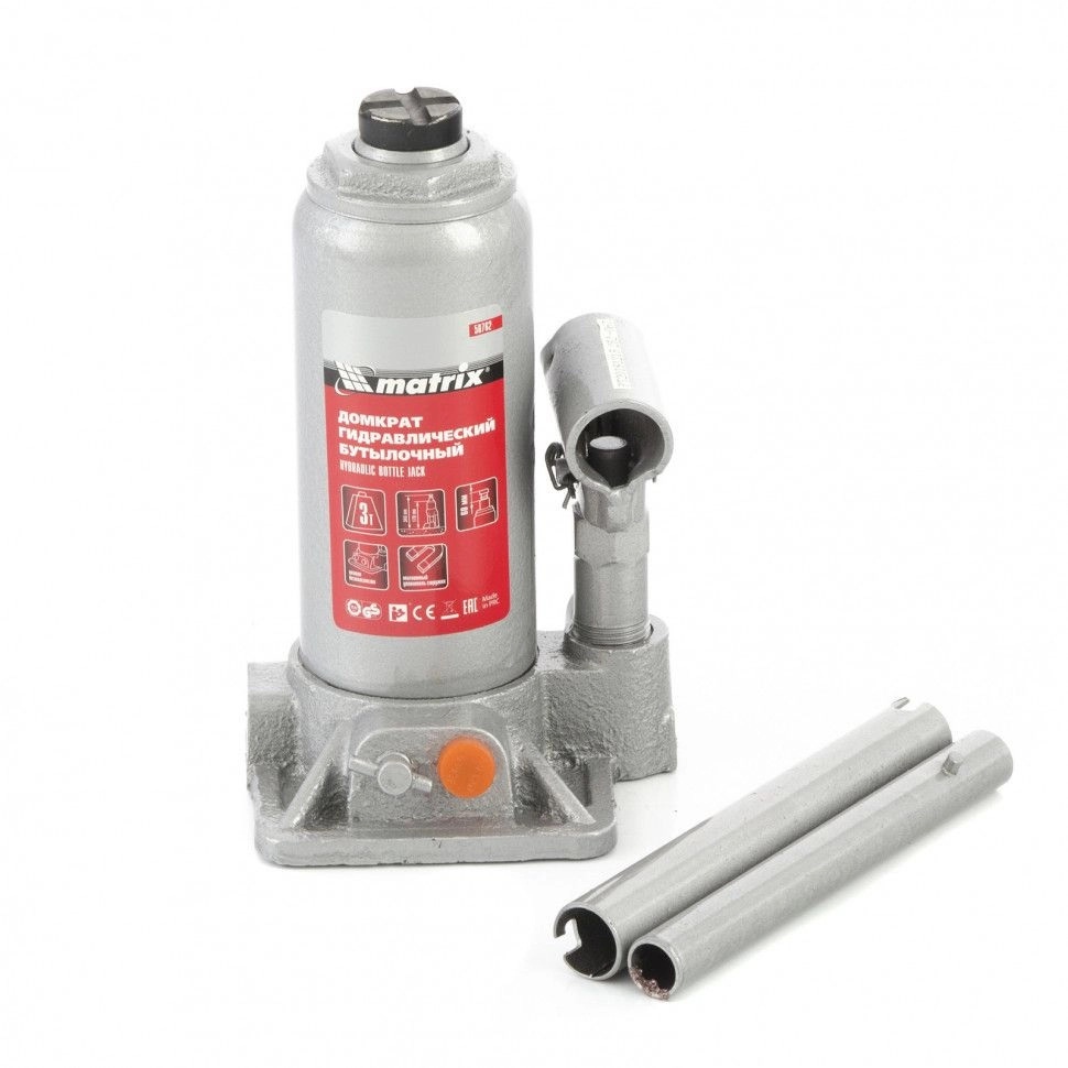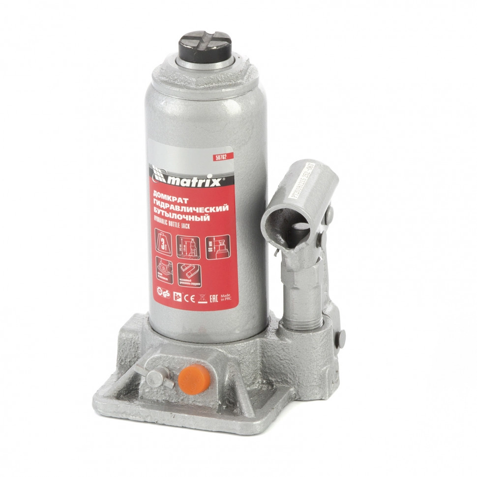 ПроизводителиДомкрат гидравлический бутылочный, 3т, h подъема 178–343мм (50762) MATRIX